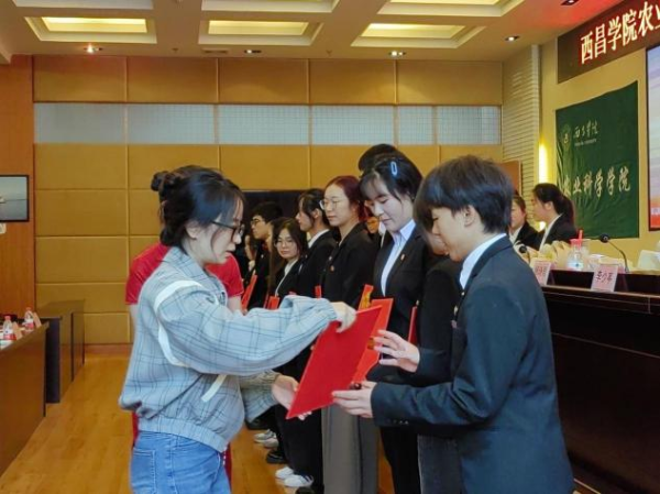 图为姬琛老师为同学颁发聘书
