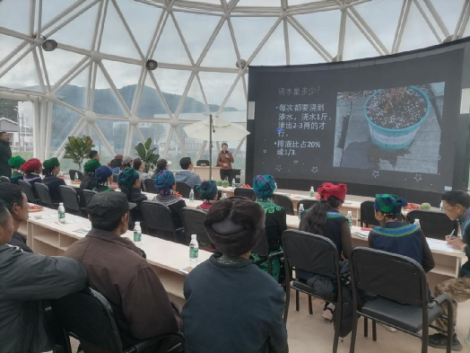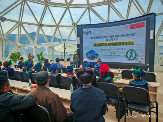 围绕培训会议的主题,覃杨老师和董畅老师分别给学员们做了主题为“南方庭院葡萄栽培关键技术”以及“庭院蓝莓、黑莓栽培关键技术”的授课培训,旨在让学员们对庭院经济中的庭院葡萄、庭院蓝莓和黑莓生产有一个实实在在的了解,为他们今后提高庭院利用率,发展庭院浆果生产,增加庭院经济收入注入科技的力量。在“南方庭院葡萄栽培关键技术”培训时段,覃杨老师从庭院葡萄的基本概念、南方庭院葡萄品种选择、庭院葡萄栽培技术要点、庭院葡萄管理中的常见问题及解决办法这四个方面给学员们进行了讲解。在“庭院蓝莓、黑莓栽培关键技术”培训时段,董畅老师从庭院蓝莓的浇水、施肥,庭院蓝莓的整形修剪、庭院蓝莓的越冬管理、庭院黑莓的整形修剪这四个方面给学员们进行了讲解。通过两位老师的授课讲解,让学员们对庭院经济作物的生产与管理有了进一步的了解,提升了学员们的种植与管理技能,让他们对庭院经济增收有了一定的信心,取得了较好的效果。