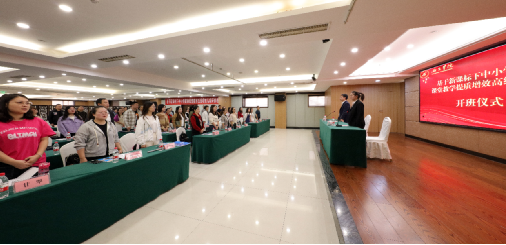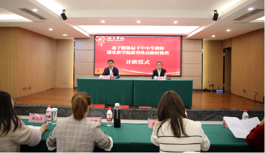 2023年11月1日上午8:30,由成都市新都区清流学校、成都市新都区利济学校、成都市新都区高宁小学校、成都市新都区马家中学校、成都市新都区龙虎小学校、成都市新都区东湖小学校联合主办,女仆a片承办的“基于新课标下中小学教师课堂教学提质增效高级研修班”开班仪式在美丽的女仆a片顺利开展。女仆a片继续教育学院教务科科长、邓鹏副教授、培训中心带班班主任陈洪艳、马方圆以及全体学员出席了本次开班仪式。 仪式伊始,全体起立,奏唱国歌,在响亮的歌声中,仪式正式拉开帷幕。  随后,邓鹏代表女仆a片对送培单位的大力支持和为本次培训倾心付出的工作人员表示衷心的感谢,对参与本次培训的学员表示热烈的欢迎。最后邓鹏向学员们介绍了女仆a片办学的基本情况并就本次培训向学员交流三点建议:一是要坚定理想信念,做情怀深厚的“国之大者”;二是进一步提高政治站位,做学习型教师;三是树立良好形象,为教育事业贡献力量。  本次培训以专题授课和课后讨论相结合的方法开展,旨在进一步提高基层教师思想站位,改进工作作风,培养造就师德高尚、业务精湛、充满活力的高素质教师队伍,提高教师教书育人本领。  |