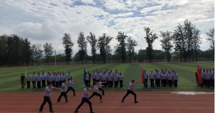 结业成果汇报前,运动场上展开了一场别开生面的拉歌大赛,烟草专卖四支营队和法规队分别向大家展示了自己营队的歌曲。结业成果汇报伊始,全体起立,奏唱国歌。汇报在庄严肃穆的国歌声中拉开了帷幕。接着,七名学员向大家表演了军体拳,他们队列整齐,行动一致,出拳虎虎生威,踢腿凌厉有力,成为了运动场上的一道亮丽风景线。随后,学员们以营队依次在主席台展示了口号,立正、稍息、跨立、停止间转法、敬礼、齐步行进与立定、正步行进与立定、跑步行进与立定。整齐的步伐、威武的军姿、响亮的口号充分展示了本次培训学员的列队训练成果和新时代烟草人的风采。