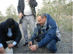 2009年希腊油橄榄专家乔治•科斯代林罗先生和索帝•沙利先生在中泽公司油橄榄基地指导油橄榄种植。