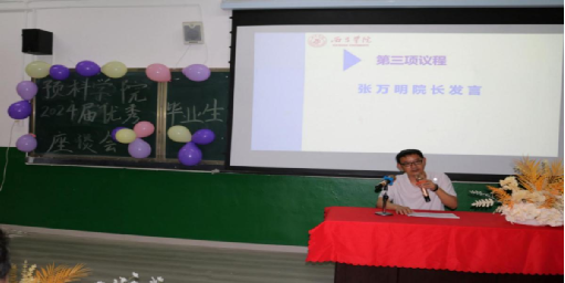 2024年6月4日,少数民族预科教育学院在104教室隆重召开2024届优秀毕业生座谈会。对即将奔赴新征程的全体2024届毕业生表示祝贺,并对优秀毕业生代表进行了表彰。座谈会由分团委书记文琼瑶主持,学院党委书记马史火、院长张万明、党委副书记卢凯、学生科负责人、辅导员老师、部分任课教师以及学生干部代表参加了座谈会。