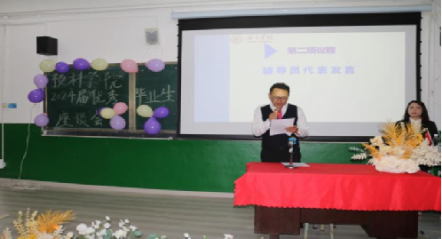 辅导员代表罗鼎元老师和杨甲甲老师先后进行交流发言,表达对同学们未来发展的美好祝愿,道出依依惜别之情。
