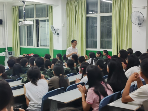 9月7日晚,预科教育学院院长张万明教授以“我们在预科相遇相知“为题,为学生讲述校史院情、讲解人文预科,通过校史院情教育,激发学生爱国爱校情怀,赓续红色血脉。