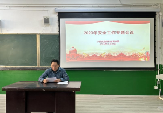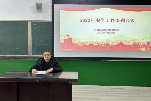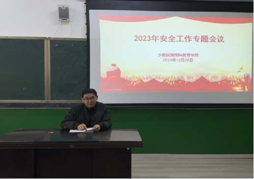 为学习贯彻落实习近平总书记关于安全生产的重要论述和重要指示批示精神,2023年12月26日下午14:30,少数民族预科教育学院在104教室召开2023年安全工作专题会议,预科全体教师参会,会议由预科学院党委书记马史火主持。