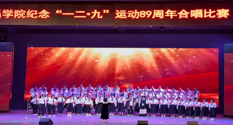 随着音乐的律动,同学们手中的旗帜从轻柔飘扬到激昂飞舞,歌声中充满了对祖国繁荣昌盛、人民幸福美满的颂扬。那雄壮的旋律和激励人心的歌词,深深触动了在场每一位观众的心弦,唤起了人们对祖国的无限自豪。他们以满腔热情和激昂的歌声,向祖国母亲献上了最真挚的赞美与热爱,展现了预科教育学院的独特魅力和风采。在激烈的角逐中,预科教育学院凭借出色的表现荣获此次比赛的三等奖。这一刻,不仅是对他们努力的肯定,更是对“一二·九”运动精神的传承与发扬。