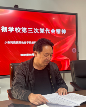 为深入贯彻落实学校党委的部署要求,全面推进学校第三次党代会精神在预科教育教学管理工作中落地落实,2024年10月15日14:30,少数民族预科教育学院在党员活动室召开教职工专题学习会,学习贯彻学校第三次党代会精神。学习会由预科教育学院党委书记马史火主持,全院教职工参加了会议。