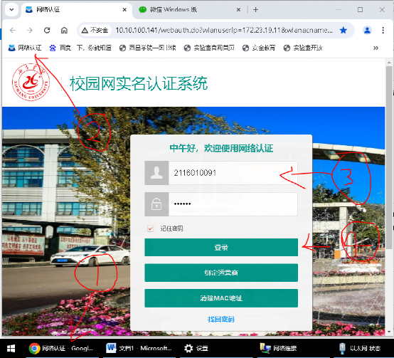 2、“网络认证”的账号和密码等相关内容参阅【 一、校园有线网络(教学区,教学办公用) 】。