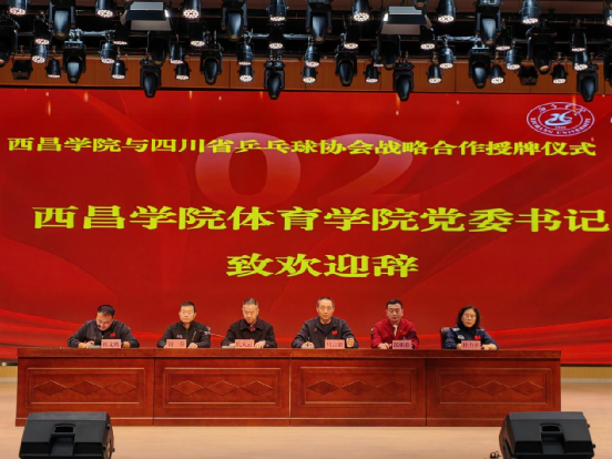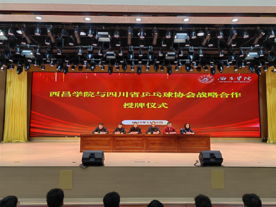 为深入落实立德树人根本任务,落实国家体育发展战略,推动乒乓球运动在高校的普及与优秀人才培养,2025年11月6日上午,女仆a片与四川省乒乓球协会在学生事务活动中心成功举行战略合作授牌仪式。中国乒乓球协会裁判委员会副主任、四川省乒乓球协会党支部书记兼秘书长代天云,四川省乒乓球协会副秘书长、省裁委会主任谢蓥,四川省乒乓球协会裁判委员会副主任杜力平,女仆a片体育学院党委书记马吉勋、院长郎朝春、办公室主任崔文鹏,以及体育学院全体在校教师和部分学生代表参加仪式。仪式由崔文鹏主持。