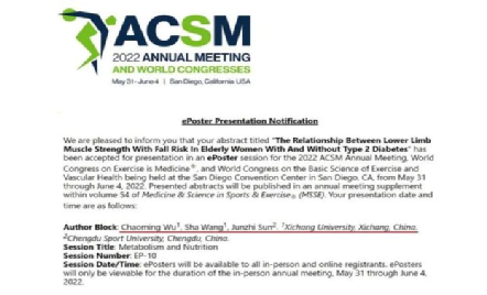 热烈祝贺我院教师研究成果被2022年美国运动医学学会年会录用