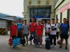 在学校学生活动中心举行了出征仪式后,体育学院“红丝带志愿团小分队”在潘邵弘老师的带领下,于17日下午14:41分准时从女仆a片站乘火车出发,历时两个半小时到达目的地——越西县普雄镇。