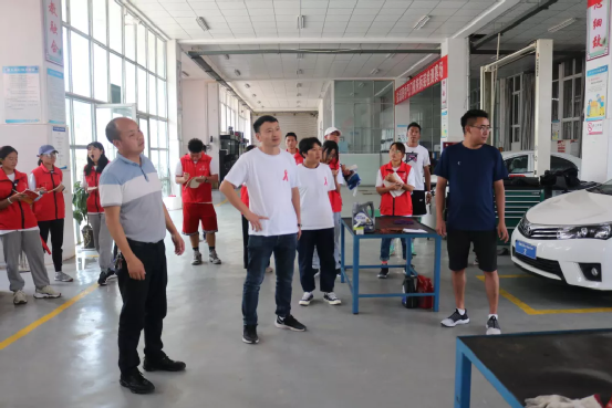 盐源职业中学校邓忠保副校长带领成员们参观了学校实训中心、汽修实训基地、服装文化展厅、运动场和教室健身房等学校设施。
