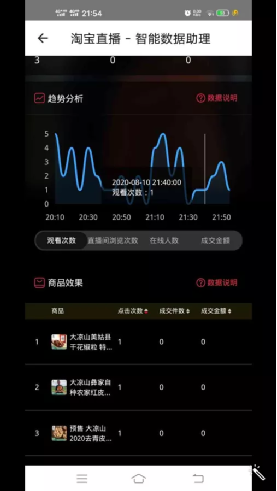 以下为此次体院“红色筑梦之旅”小分队电商直播带货的直播数据图: