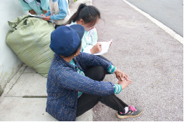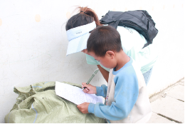 (对村里老人小孩进行禁毒防艾的问卷调查)