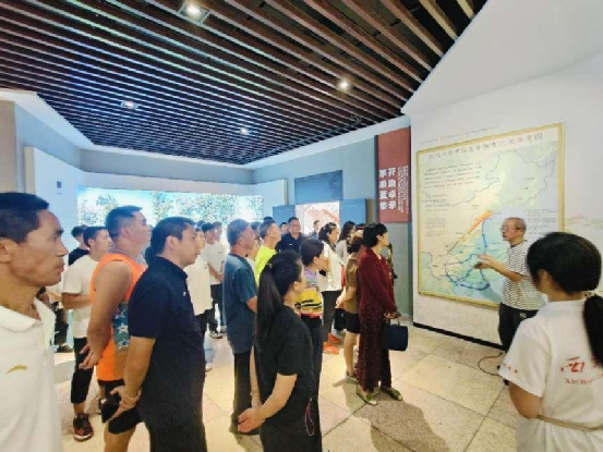 在校史馆,讲解员生动详细地介绍了学校从创办至今的辉煌历程,包括各个历史时期的重大事件、杰出校友的辉煌成就以及学校体育事业的蓬勃发展。党员教师们认真聆听,不时驻足观看展品,对学校的深厚底蕴和辉煌成就表示由衷的赞叹。