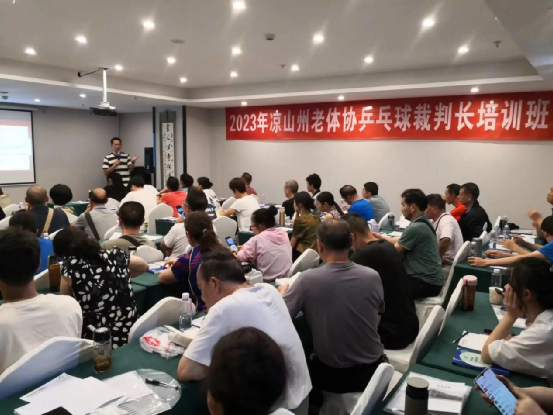 本期乒乓球裁判长培训班是在近年来与凉山州老体协在赛事承办、学术交流、裁判员与教练员培训等多次合作以后的又一次深度合作。经过前期培训课程构建、培训讲座研讨等长时间精心准备,培训班经过开班仪式、培训讲座、主题研讨、案例分享、培训考核、答疑解惑、结业典礼的各个环节,于7月25日圆满结束。