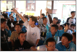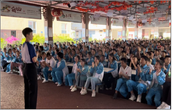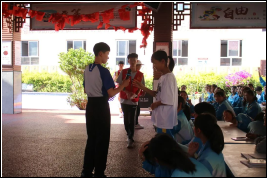 体育学院篮球裁判员胡芷怡同学向在场的500多名师生讲解篮球规则,以及其所在体育学院对凉山篮球事业的发展和教育等方面相关知识。团队对金成学校的同学们发放了口哨、笔记本等小礼品,发扬同学们“更快、更高、更强”和“团结、友谊、进步”的体育精神,培养团结协作,顽强拼搏,奋力争先的进取精神。