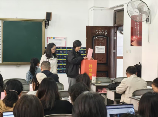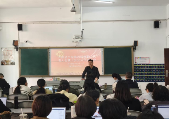 为加强学院分工会组织建设,发挥工会桥梁纽带作用,保障教职工民主权利,根据学校工会通知要求,外国语学院分工会于2025年10月28日在弘毅楼N101教室召开会员大会,开展分工会委员会及二级教代会执委会(以下简称“两委会”)换届选举。外国语学院分工会主席文宇主持会议。
