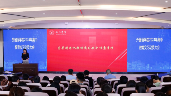 外国语学院院长陈红梅作实习动员讲话,强调了实习的重要意义,鼓励同学们珍惜实习机会,积极锻炼自己,为未来的职业发展打下坚实基础。
