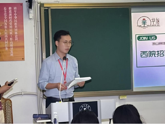 宣讲会上,华旭商业公司负责人详细介绍了公司的发展历程和业务特色。作为一家专注于教育培训领域的企业,华旭教育目前已在凉山州开设多所培训学校,业务涵盖K12教育等多个领域。并特别指出,随着公司国际教育业务的拓展,对具有扎实语言功底和跨文化交际能力的外语人才需求日益增长。她表示,英语专业学生的文学素养、商务英语专业的实务能力、翻译专业的语言转换技能,都将为公司的课程研发提供重要支持。