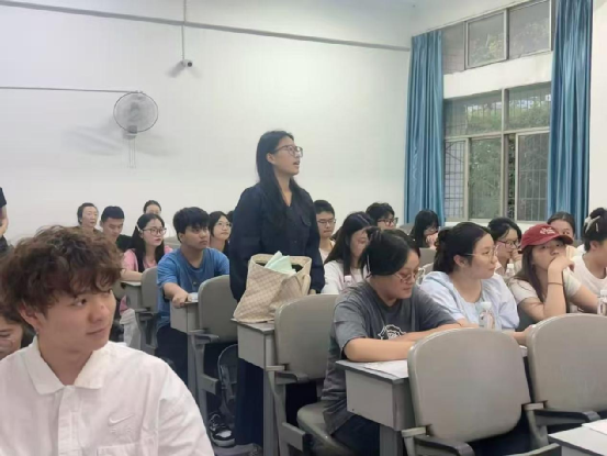 在互动环节,学生们围绕“教育培训行业的发展前景”“外语人才在教育企业的职业发展路径”等话题踊跃提问。公司负责人就“双语课程研发中的文化适应”等实际问题进行详细解答,并分享了多个成功案例。
