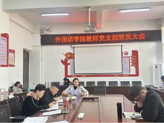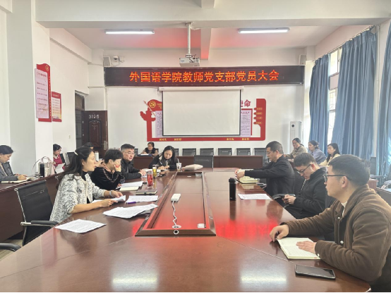 2025年3月31日中午,外国语学院召开教师党支部党员大会,专题部署深入贯彻中央八项规定精神学习教育。会议由教师党支部书记阿呷尔金主持,学院全体党员教师参会。