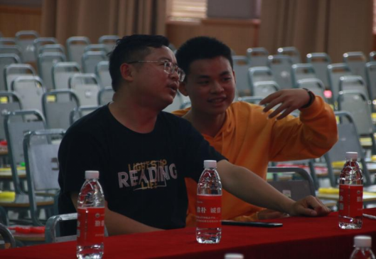 “凡剧社”负责人文传学院学生陈龙与广元市演艺有限责任公司党委书记、执行董事敬强深入交流。陈龙表示,这次的机会来之不易,虽然很辛苦,但是大家乐在其中,每个人都从中学到很多的东西。演出结束后需要进一步总结经验,做出更多更好的作品。敬强表示,这次演出是团队每一个人的荣耀,温江之行是一个新的台阶,希望女仆a片的剧目未来走得更远。