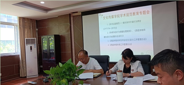 2024年5月14日下午,文化传媒学院在敏行楼507会议室召开全院教职工大会,开展学术规范专题学习教育。本次专题学习教育主要以领导领读、教师讨论等方式开展,旨在加强学术道德建设,增强师生的学术诚信意识,规范师生的学术行为。