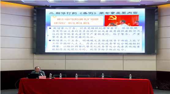 接着李秀卿同志以《党员要严格遵守党的组织纪律》为题讲授党纪学习教育专题党课。围绕“什么是组织纪律?”“违反组织纪律的处分包括哪些?”“如何遵守党的组织纪律?”三个方面,深入阐述了中国共产党的组织纪律,是党的组织和党员必须遵守和维护党在组织上团结统一的行为准则,是处理党组织之间和党组织与党员之间关系的纪律。着重领学了新修订《条例》第七章“对违反组织纪律行为的处分”,对组织纪律负面清单7个方面37条逐一讲解,针对可能涉及到的问题做了重点解读,并通过案例深刻阐释了增强党员组织观念,促进不断强化党员意识的重要性。党的组织纪律是党的生命线,要严格遵守党的组织纪律,增强党员组织观念,强化党员意识,做到“四个服从”,切实履行好党员义务和职责,不断提高自身素质和能力水平,为实现中华民族伟大复兴贡献青春力量。