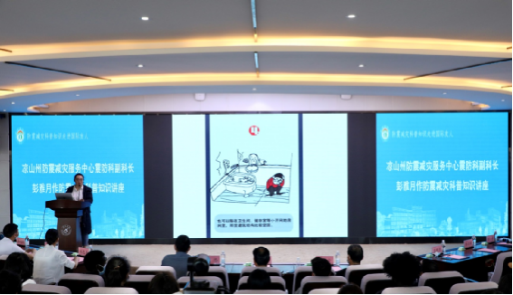 Peng Yayue, deputy chief of the Earthquake Prevention Office of the Earthquake Disaster Mitigation Service Center of Liangshan Yi Autonomous Prefecture, lectured on earthquake disaster mitigation.
