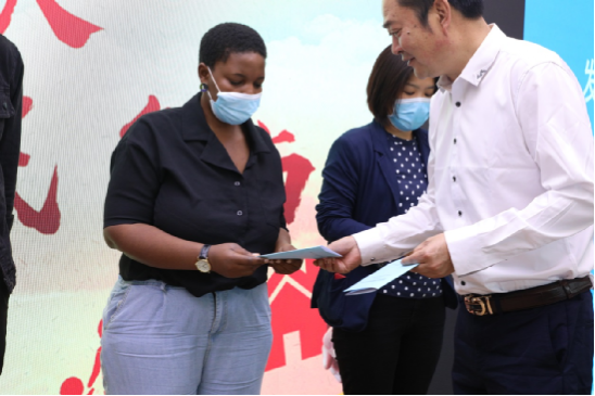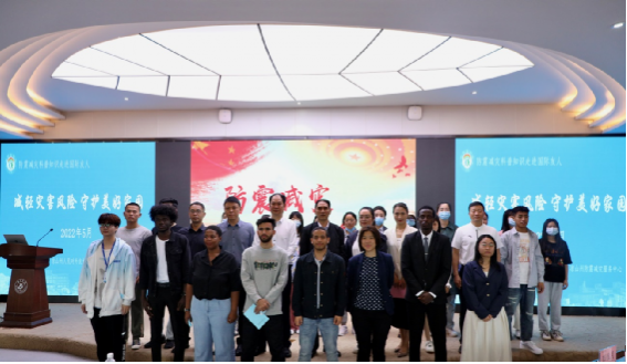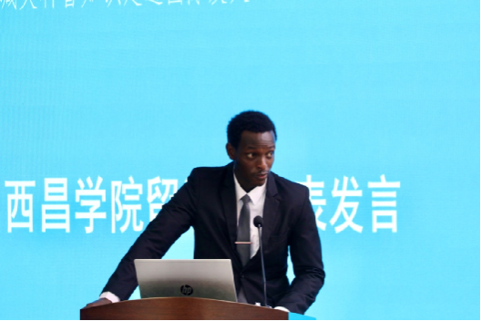 Shema Frank,on behalf of foreign students of the university, offered gratitude to Peng Yayue, the deputy chief, for her lecture on earthquake prevention and mitigation and talked about his understanding of earthquake disasters.