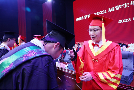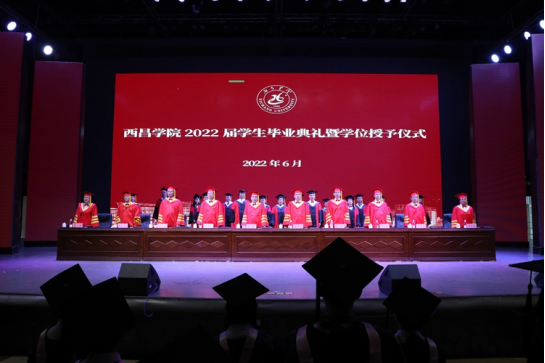 Xichang University held its commencement ceremony and degree conferment ceremony for the undergraduate class of 2022 on June 23. The ceremony was attended by secretary of the CPC XCU Committee Peng Zhengsong, Xichang University President Zhu Zhanyuan, vice secretary of the CPC XCU Committee Du Zhengcong, vicesecretary of the CPC XCU Committee and secretary of Committee for Discipline Inspection Yao Yuncheng, member of the standing committee of the CPC XCU committee and vice-president of the university, Chen Xiaohu, Hu Jinzhao, Qumu Wuge, Zhang Wei, member of the standing committee of the CPC XCU committee and head of the Propaganda Department and the United Front Work Department of Shen Liangjie, all the members of the Academic Degree Evaluation Committee, and representatives of students and teachers. The ceremony was hosted by Zhang Wei.