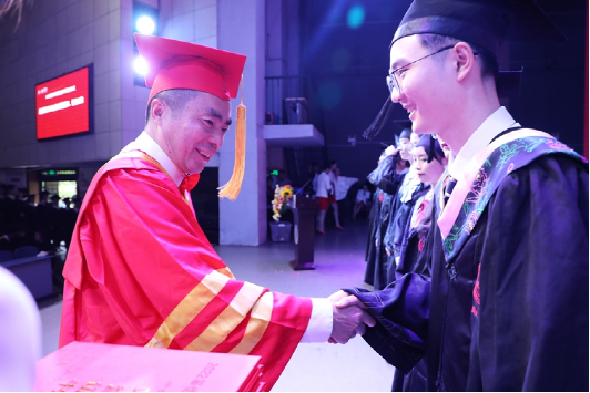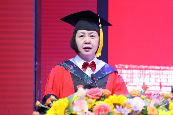 Professor Yang Hong from School of Environment and Resources, delivered her remarks as the teacher representative, extending her heartfelt congratulations to all the graduates on the successful completion of their studies. In her remarks, she gave three pieces of advice to all graduates: firstly, learn to adapt to the society; secondly, never give up the pursuit of learning; thirdly, never give up dreams.
