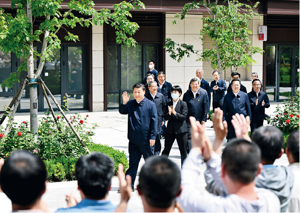 2023年5月10日,中共中央总书记、国家主席、中央军委主席习近平在河北省雄安新区考察,并主持召开高标准高质量推进雄安新区建设座谈会。这是10日上午,习近平在容东片区南文营社区考察时向社区居民挥手致意。