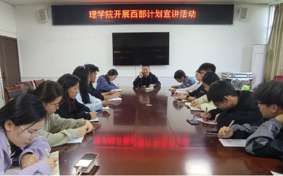 为深入贯彻落实国家关于鼓励高校毕业生服务西部的决策部署,引导青年学子厚植家国情怀、勇担时代使命,理学院于3月26日在N5311召开西部计划专题宣讲会,主讲人为理学院分团委书记余力,理学院毕业年级学生干部参加会议。