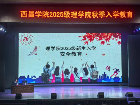 2025 年 9 月 18 日下午,理学院于学生活动中心举办 2025 级新生入学安全教育,党委副书记(主持工作)焦钰教授主讲,全体 2025 级新生参会。