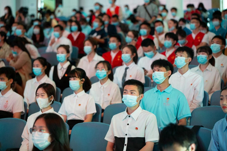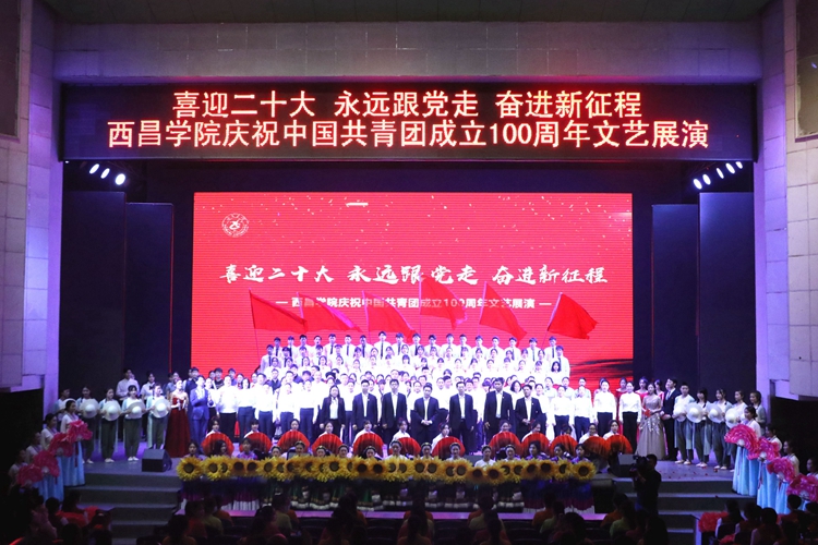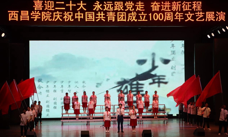 2022年是中国共产主义青年团建团100周年。回望百年岁月,中国共产主义青年团高举“五四”火炬,怀揣雄心壮志,始终坚定不移跟党走,团结带领广大团员青年前赴后继、奋勇争先,书写了中国青年运动的绚丽篇章。   为庆祝中国共产主义青年团成立100周年,传承“五四”精神,激发青年团员追寻信仰之光,勇担青春使命,以实际行动迎接党的二十大胜利召开。5月18日,我校“喜迎二十大、永远跟党走、奋进新征程”庆祝中国共青年团成立100周年文艺展演在学生活动中心大礼堂举行。学校党委书记彭正松,党委副书记杜正聪,党委副书记、纪委书记姚云成,党委常委、副校长陈小虎、胡金朝、曲木伍各、张炜与相关职能部门负责人、二级学院党政领导、师生代表欢聚一堂,共赴青春盛会。 第一篇章 觉醒年代