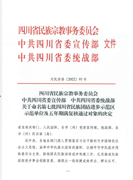 近日,四川省民族宗教事务委员会、中共四川省委宣传部、中共四川省委统战部发布了关于命名第七批四川省民族团结进步示范区示范单位及五年期满复核通过对象的决定,女仆a片被命名为第七批四川省民族团结进步示范学校。