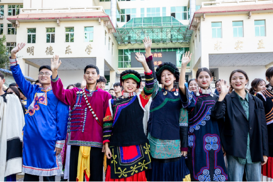 央视秋晚志愿者正在工作  参加凉山州70周年州庆活动志愿者 大力助推民族地区脱贫攻坚和乡村振兴。在脱贫攻坚中,西院先后有49人主动驻村扶贫,是全省高校驻村扶贫人数最多的高校,其中超过七成的扶贫队员为汉族,这正是得益于学校长期的民族团结教育。学校和扶贫队员多次获省州表彰,学校先后获“国务院民族团结先进集体”“全国民族教育先进集体”“四川省民族团结先进集体”等荣誉称号。 未来,学校将深入贯彻落实习近平新时代中国特色社会主义思想,高举中华民族大团结的旗帜,以铸牢中华民族共同体意识为主线,自觉肩负民族地区社会稳定、各民族团结进步、共同发展的历史使命,持续深化民族团结进步教育,为促进各民族共同团结奋斗、共同繁荣发展做出更大贡献。 |