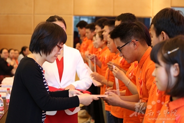 在总结表彰会上,校团委书记袁颖对2018年“青春红丝带志愿团”的活动情况进行了总结。四川省性病艾滋病防治协会做了督导评估报告。六名师生志愿者进行了交流发言。