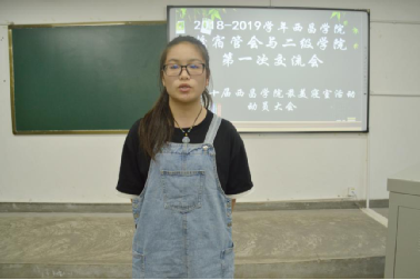 | 女仆a片学生宿舍自律委员会宣传部第八周工作简报 校宿管会与二级学院的第一次交流会 暨第十届女仆a片最美寝室活动动员大会 首先是由校宿管会会长王美超讲话: 从会长王美超的讲话内容中我们得出:第一,学生寝室检查力度将加强,查寝时不会直接去宿管阿姨那拿钥匙开门进寝室;第二,希望二级学院在查寝时分清校院称呼,注意态度,要有为同学服务的思想观念,同时也希望各二级学院积极配合我们校宿管会的检查工作。  会长王美超讲话 在会长讲完后就由宣传部代表文丹丹介绍宣传部日常工作: 宣传部主要工作主要有一下几点:建设微信公众号官方QQ号,对校宿管会活动进行拍照,做推文,简报,对各类照片进行分类归档并向老师汇报。  宣传部干部发言 紧接着是检查部干部孙雪林讲解检查部的日常工作:检查部主要是参与二级学院之间互查,在周一和周三对寝室卫生的常规检查和积极参与最美寝室评比活动的寝室检查。  检查部干部发言 在检查部干部讲了检查部的工作后,生活部干部李新宇则对生活部的工作做了一个详细的讲解:生活部主要是负责违规电器的检查并且在检查寝室时要求各干事必须穿会服,带工作证,熟知查寝规则,检查时不能乱碰别人东西。  生活部干部发言 继生活部之后办公室的干部代表也对办公室的日常工作进行了讲解重点是解释了在通知时出现问题的原因。  办公室干部发言 然后纪检部干部木常青讲话,木常青主要讲了检查寝室的晚归情况,未在寝室的11点前在楼长处消寝,12点之后不消寝的为夜不归宿,将通报各二级学院;强调要严格执行操行分加减制度。  纪检部干部发言 最后策划部干部李励代表策划部总结了策划部的工作,策划部主要是策划组织最美寝室评比活动详。 在动员大会的最后策划部部长刘秋冀对最美寝室策划书进行了讲解,精彩清晰的为我们呈现了最美寝室活动的各个流程。各个代表都激烈的讨论,氛围浓厚。  各二级学院代表积极参与 本次最美寝室动员大会在宿管会全体成员的努力下得以有条不紊的进行,在积极热烈的氛围中,有了完美的结局。相信在接下来的活动和工作中各部门一定会团结一致,一起努力,改革创新,将饱满热情的心投入到宿管会建设中去,让宿管会的明天越来越美好。 |