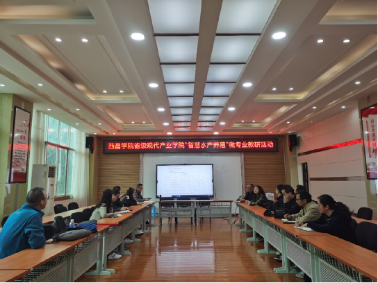 本次教研活动分为“智慧水产养殖”微专业团队成员研讨设计课程教学内容、厦门海洋职业技术学院厦门智慧渔业重点实验室魏茂春教授讲授“互联网+智慧渔业”讲座及现场参观动物科学学院校内产教融合创新创业基地三个部分。