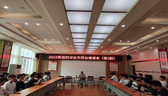信息技术学院于2023年5月10日上午10:30在信息技术学院一楼会议室召开2023届返校毕业生就业推进会,会议由董加强副院长主持,毕业班辅导员唐承佳、朱国仁,就业干事胡艳婷以及2023届已返校50名学生代表参加了会议。