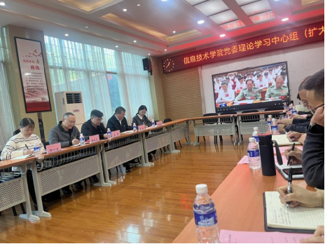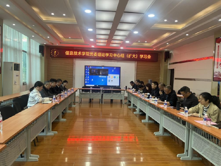 11月19日,信息技术学院在致远楼1楼会议室召开2024年11月党委理论学习中心组(扩大) 学习会,会议以学习“全国教育大会精神”为主题。学校“巡学旁听”第三组成员马克思主义学院院长杨永清、外国语学院党委书记文宇、离退休工作处处长杨六兰、机械与电气工程学院党委书记张谊、党委宣传部新闻中心副科长邹雪梅到现场巡学旁听,学院党委委员、纪委委员、办公室主任、教务科科长、学生科科长、教研室主任参加学习会。会议由学院党委书记谭时康主持。