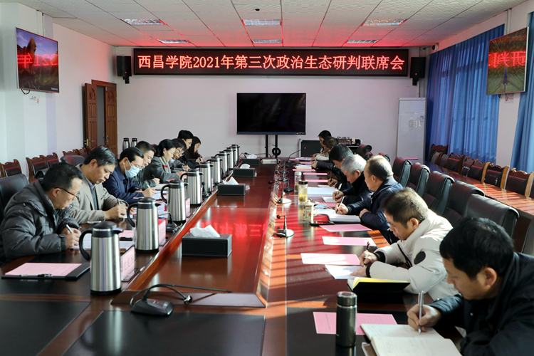 12月24日下午,学校在办公楼一楼会议室召开2021年第三次政治生态研判联席会。开展政治生态研判,是对学校全面工作的把脉问诊,也是学校党委班子应当重视并抓好的政治责任,对学校更好地贯彻落实全面从严治党要求和立德树人根本任务、提升党委班子办学治校能力、提高干部队伍建设水平、提升教育教学质量,具有重要的现实指导意义。