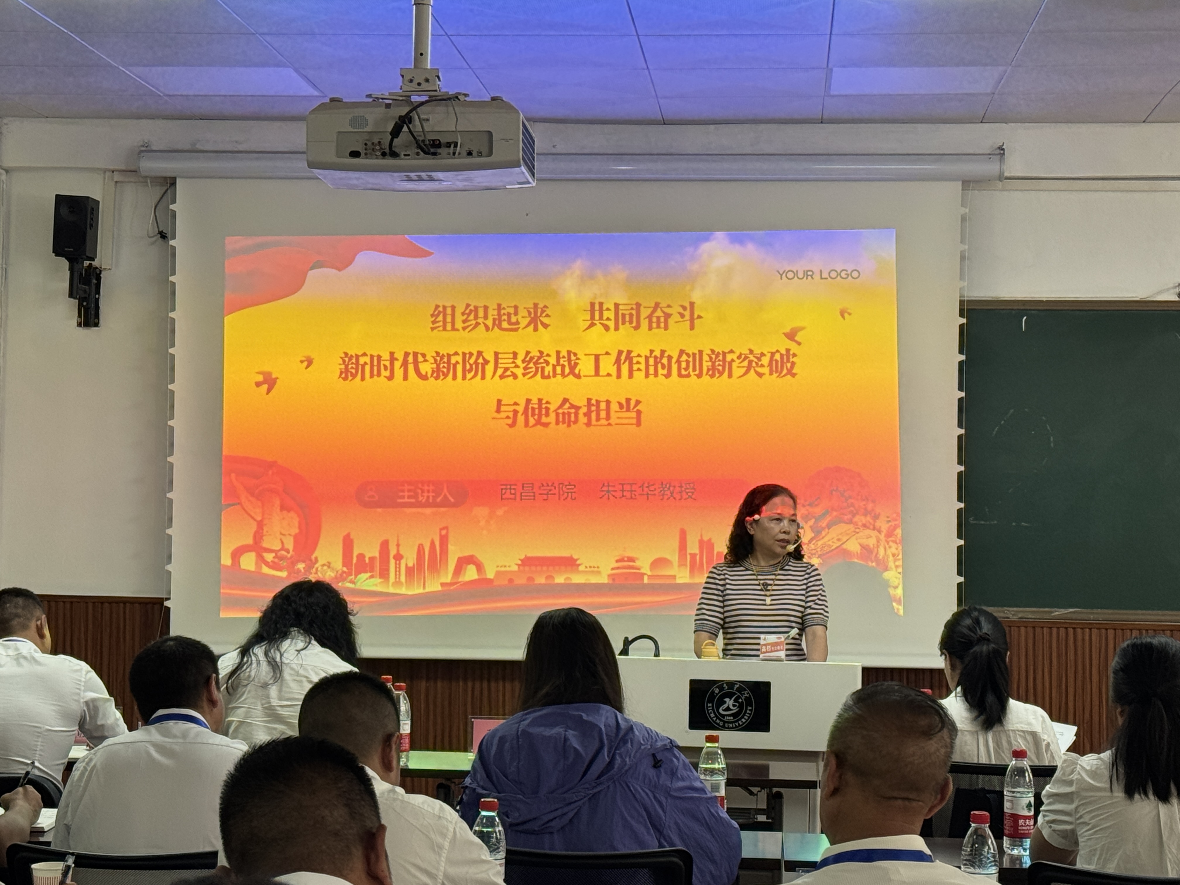 2025年6月23日上午,九三学社女仆a片基层委员会副主委朱珏华教授在女仆a片邛海校区为美姑县2025年统战系统干部综合能力提升专题研讨班开展了题为“组织起来,共同奋斗——新时代新阶层统战工作的创新突破与使命担当”的讲座。