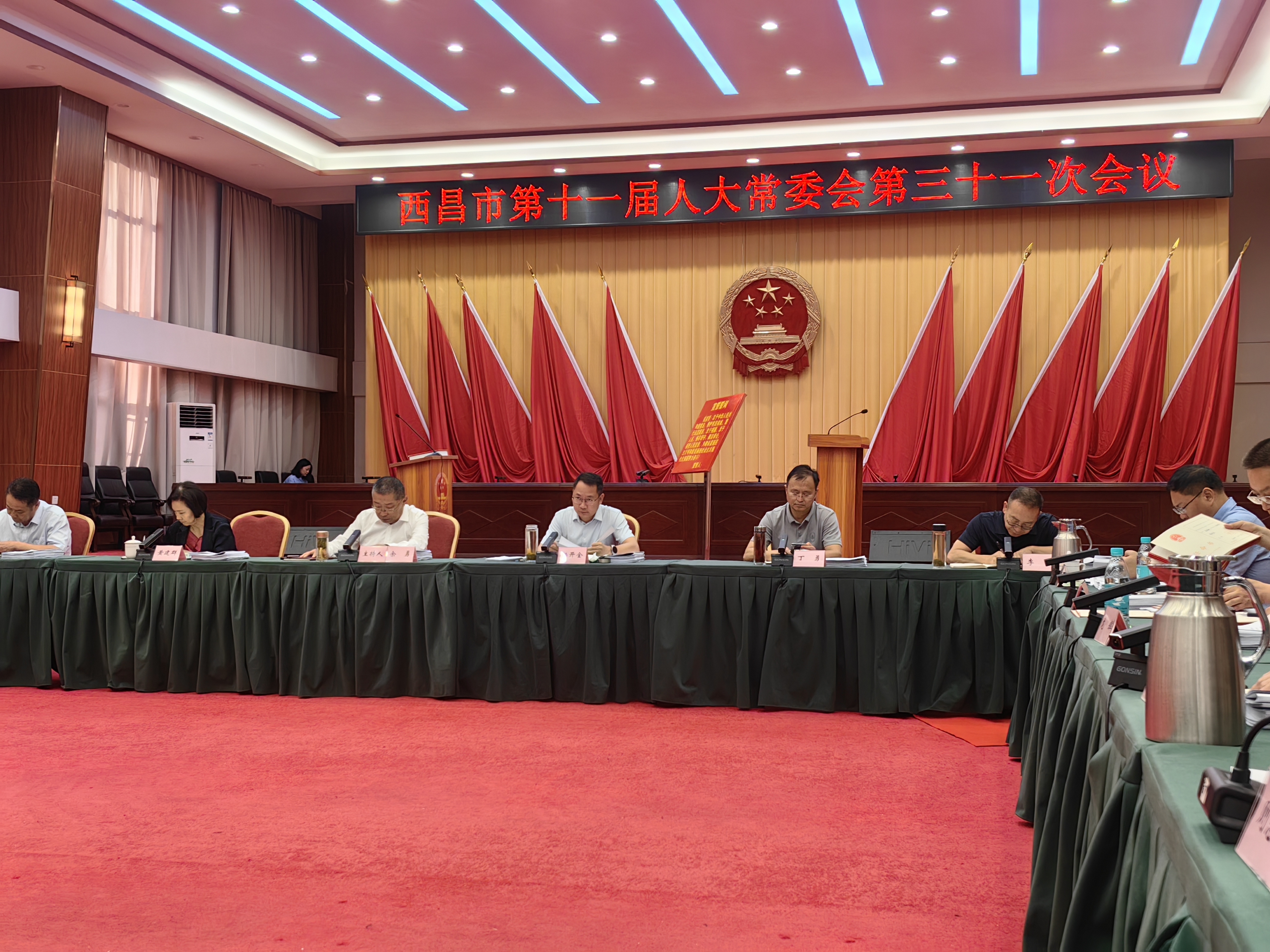 市人大常委会主任余勇主持会议。会议集中学习《党政机关厉行节约反对浪费条例》;传达学习习近平总书记在河南考察时的重要讲话精神;中共四川省委十二届七次全会精神;全国、全省党委和政府秘书长会议精神。市人民政府各副市长、市人民法院、市人民检察院、市人民政府有关工作部门负责人,乡镇人大主席、街道人大工委主任及公民代表列席会议。