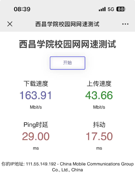 2.测试结果依赖于浏览器和操作系统等软件环境,如果测试结果中网速太低,请换一个浏览器进行再一次测试。如果两次测试结果网速都很慢,可能是网络问题,请联系网络信息中心处理。
