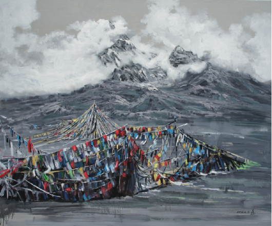 油画《祈福的苏尼》,2012年蓝顶“燃点-溯源之旅”中国当代艺术邀请展。
