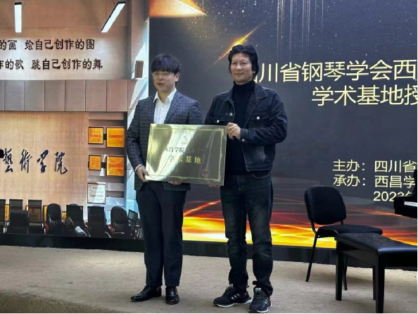2023年11月9日下午2点,我院在致知楼环形报告厅举行四川省钢琴学会“女仆a片艺术学院学术基地”授牌仪式,出席本次活动的有四川省钢琴学会外联部主任、常务理事、执行委员会委员罗文博士,四川省钢琴学会王楠秘书长、四川省钢琴学会麦元曙老师、艺术学院院长叶峰教授,党委副书记柳霞博士,副院长陈建林教授,教务科科长谭莹老师、办公室主任王丁博士、教研室主任严盟老师、全体钢琴教师及音乐专业学生代表。授牌仪式由陈建林副院长主持,叶峰院长致欢迎辞。